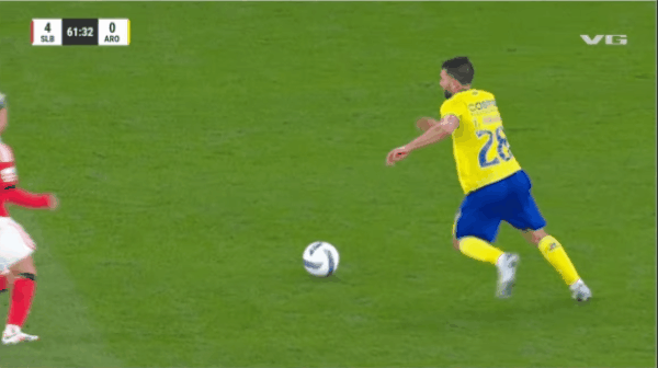 Предупреждающий знак на 62минуте — нарушение Престиани (Бенфика)