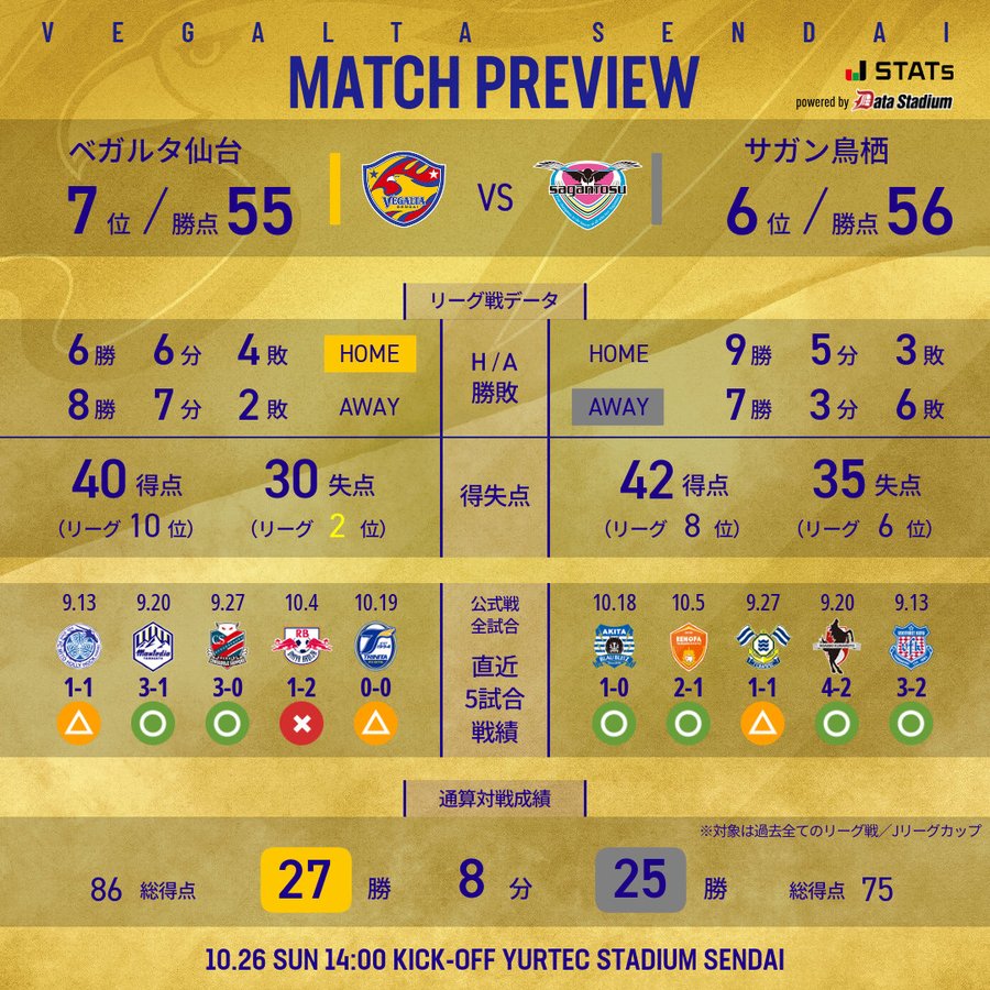 В предыдущих 20 встречах между двумя командами Тосу Сэндстоун имел небольшое преимущество: 9 побед, 3 ничьи и 8 поражений. Однако в первом туре этого сезона гости «Сендай» разгромили соперника со счетом 1:0 голом Гоги Юты. В этой игре Сендай Танабата будет стремиться вернуться на победную трассу на стадионе хозяев поля. Сможет ли Tosu Sandstone сохранить свою хорошую конкурентоспособность?