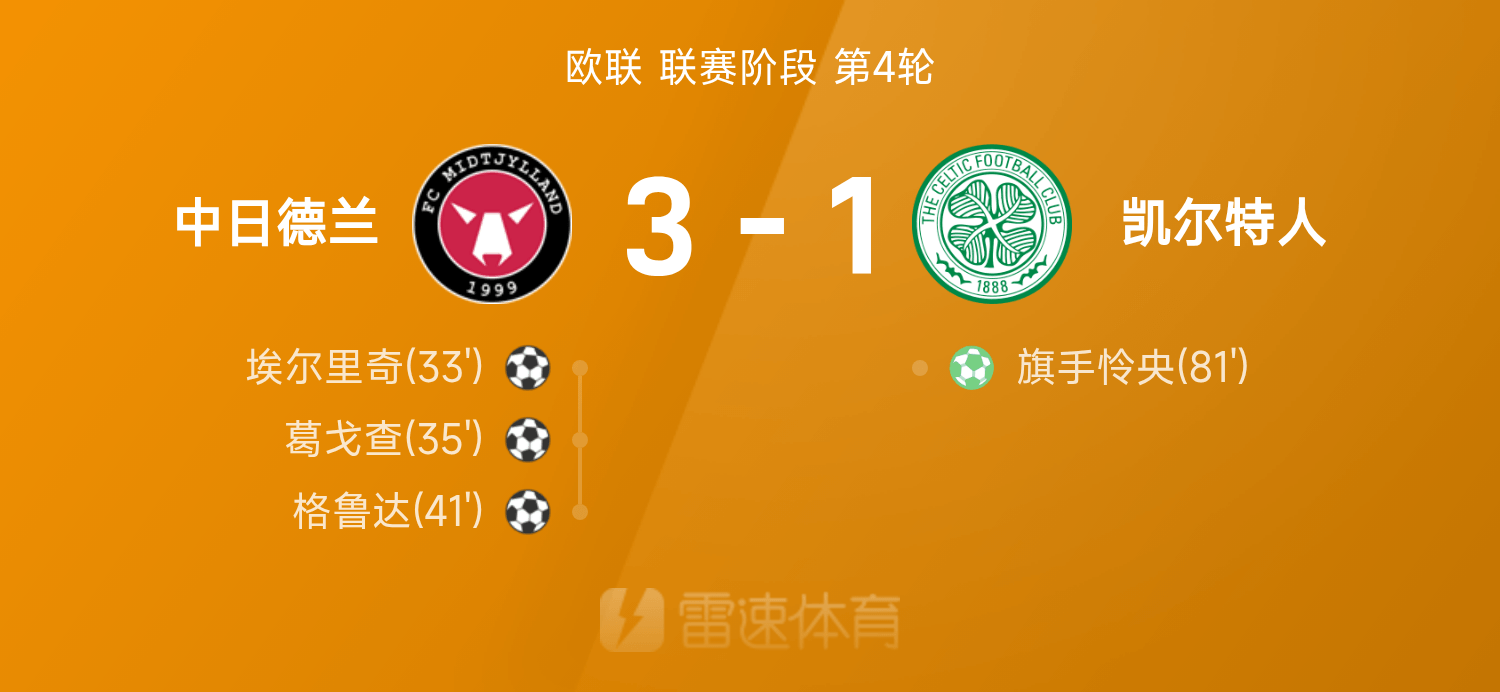 Отчет Лиги Европы: Гегоча забил 1 бросок и 1 пас, «Мидтъюлланн» разгромил «Селтик» 3-1