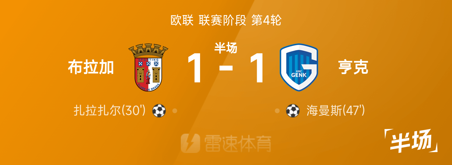 6686 Спорт 07 ноября В четвертом туре Лиги Европы 25/26 «Брага» встретилась с «Генком». После перерыва счет между командами стал «Брага» 1:1 «Генк», голы забили Залазар и Хейманс.