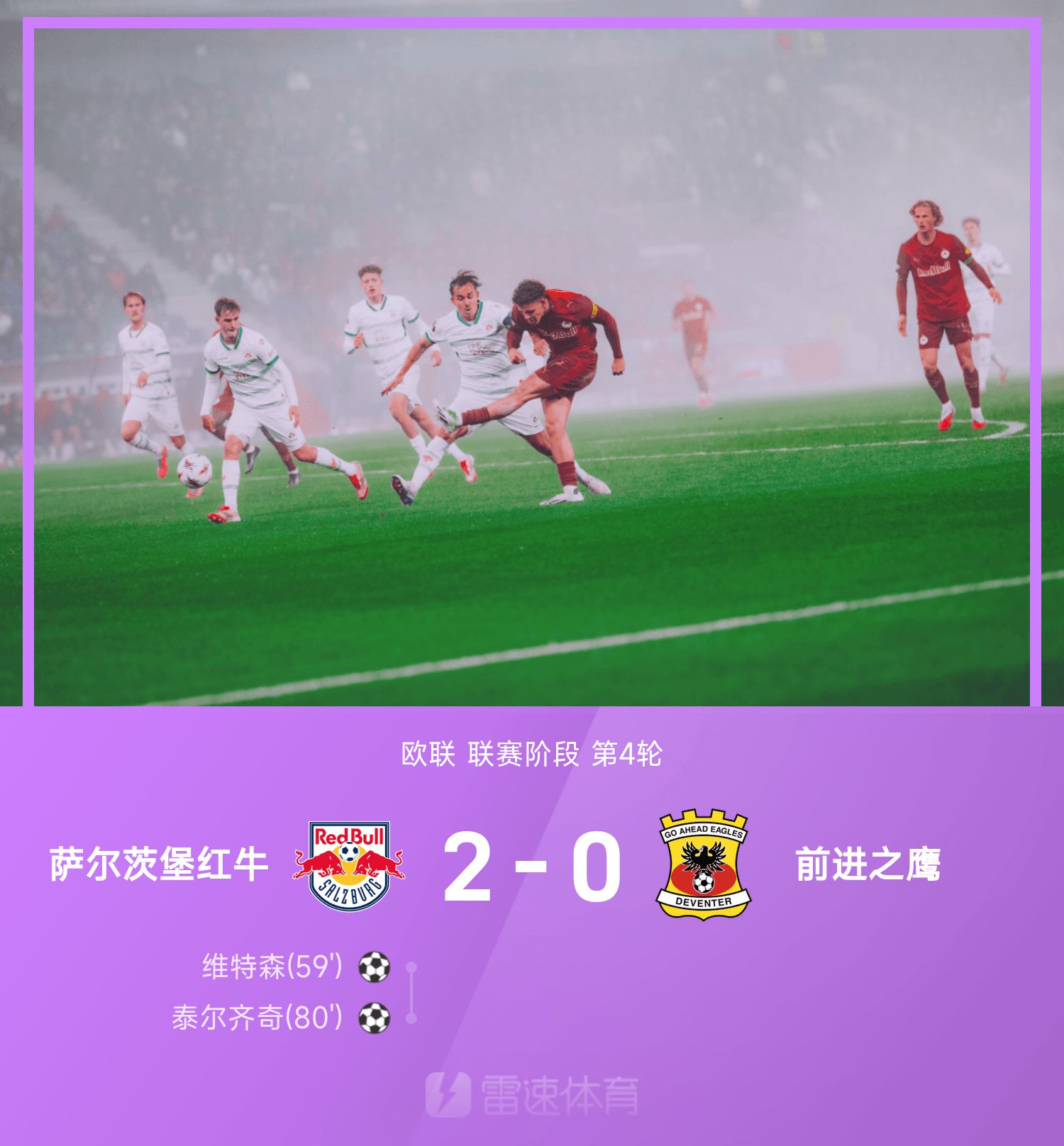 6686 Sports News от 7 ноября В четвертом туре Лиги Европы 25/26 команда «Зальцбург Ред Булл» встретилась с «Адванс Иглз». В первом тайме обе команды обменялись атакой и защитой. Зальцбург Ред Булл полагался на стандартные положения и удары из-за пределов, чтобы угрожать воротам соперника. На 59-й минуте второго тайма Терзич отдал пас в штрафную, Уитсон забил, и «Ред Булл Зальцбург» вышел из тупика. На 80-й минуте Терзич забил прекрасный гол, и «Ред Булл Зальцбург» повела в счете 2–0. После этого обеим командам не удалось изменить счет. В итоге Red Bull Salzburg разгромил Advance Eagle со счетом 2:0 на стадионе хозяев поля.