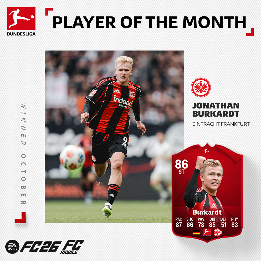 6686 Новости спорта от 7 ноября Бундеслига официально объявила лучшего игрока лиги октября. Нападающий «Франкфурта» Буркетт был избран вместо нападающего «Баварии» Диаса и капитана фармацевтической компании Гримальдо.