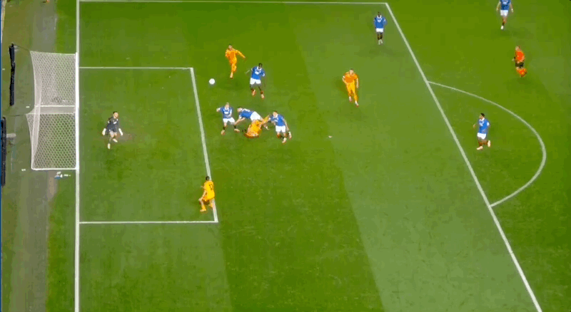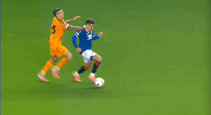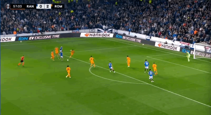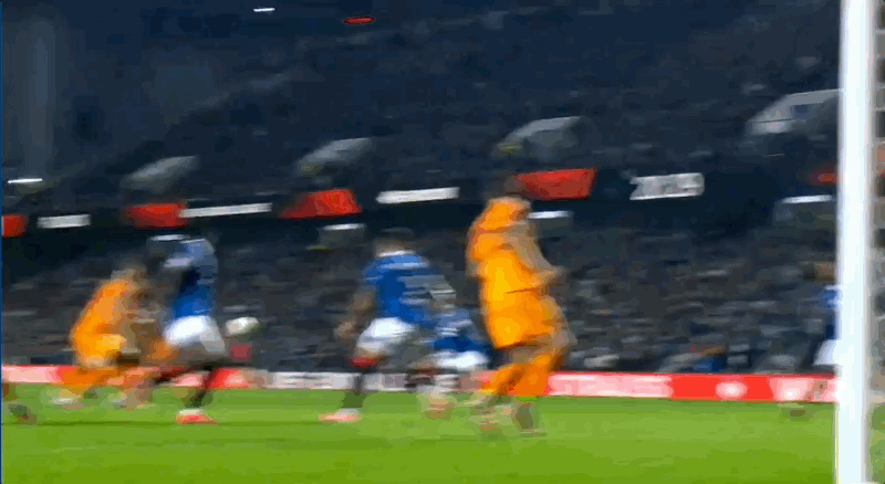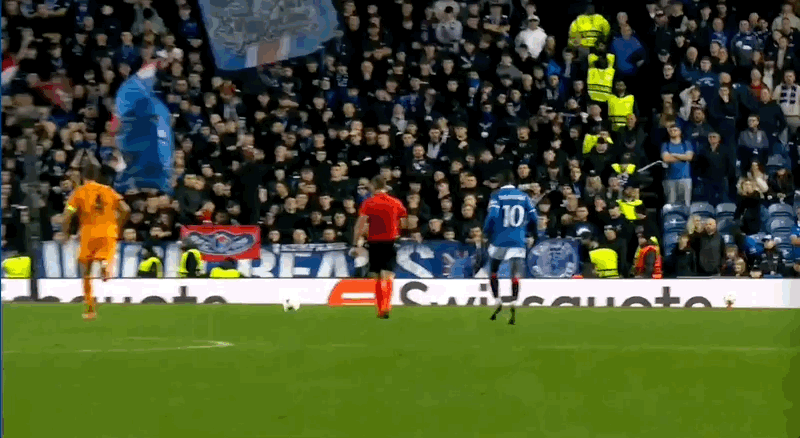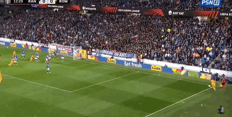 22’ Суле пробил с внешней стороны, а вратарь «Рейнджерс» отбил мяч с лицевой линии