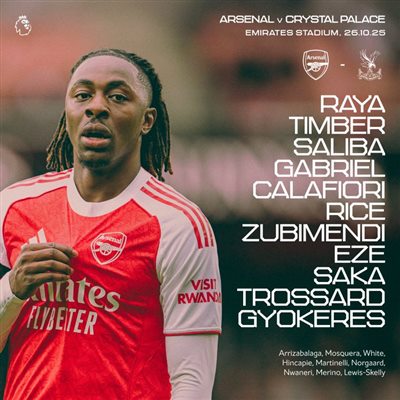 Стартовый состав «Арсенала» против «Кристал Пэлас»: Эз против старого клуба, Джекереш и Гуэй в стартовом составе