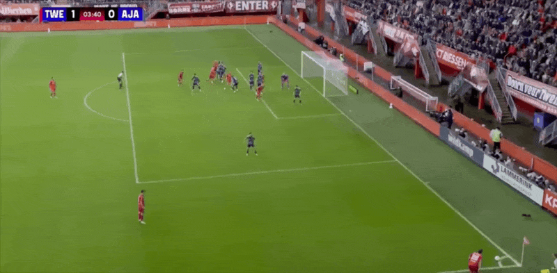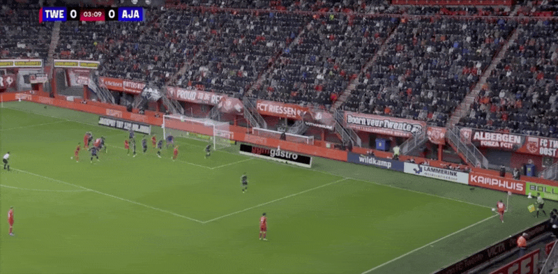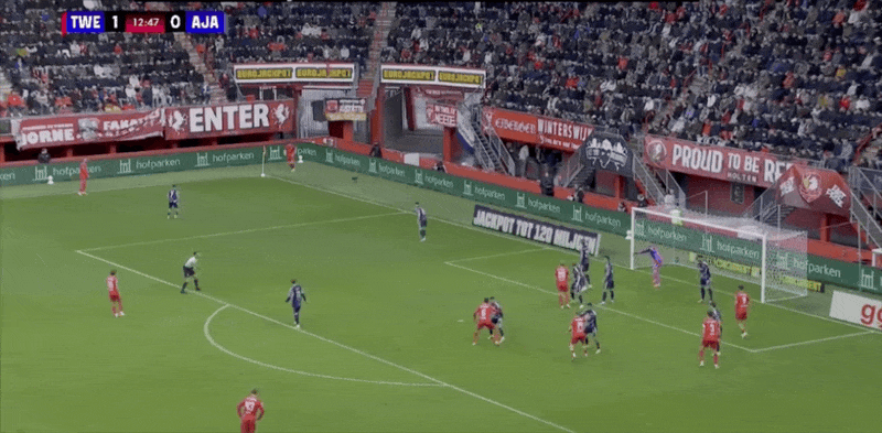 13' Твенте выполнил стратегический боковой удар, и Ван Вольфсвинкель головой со спины не попал в штангу