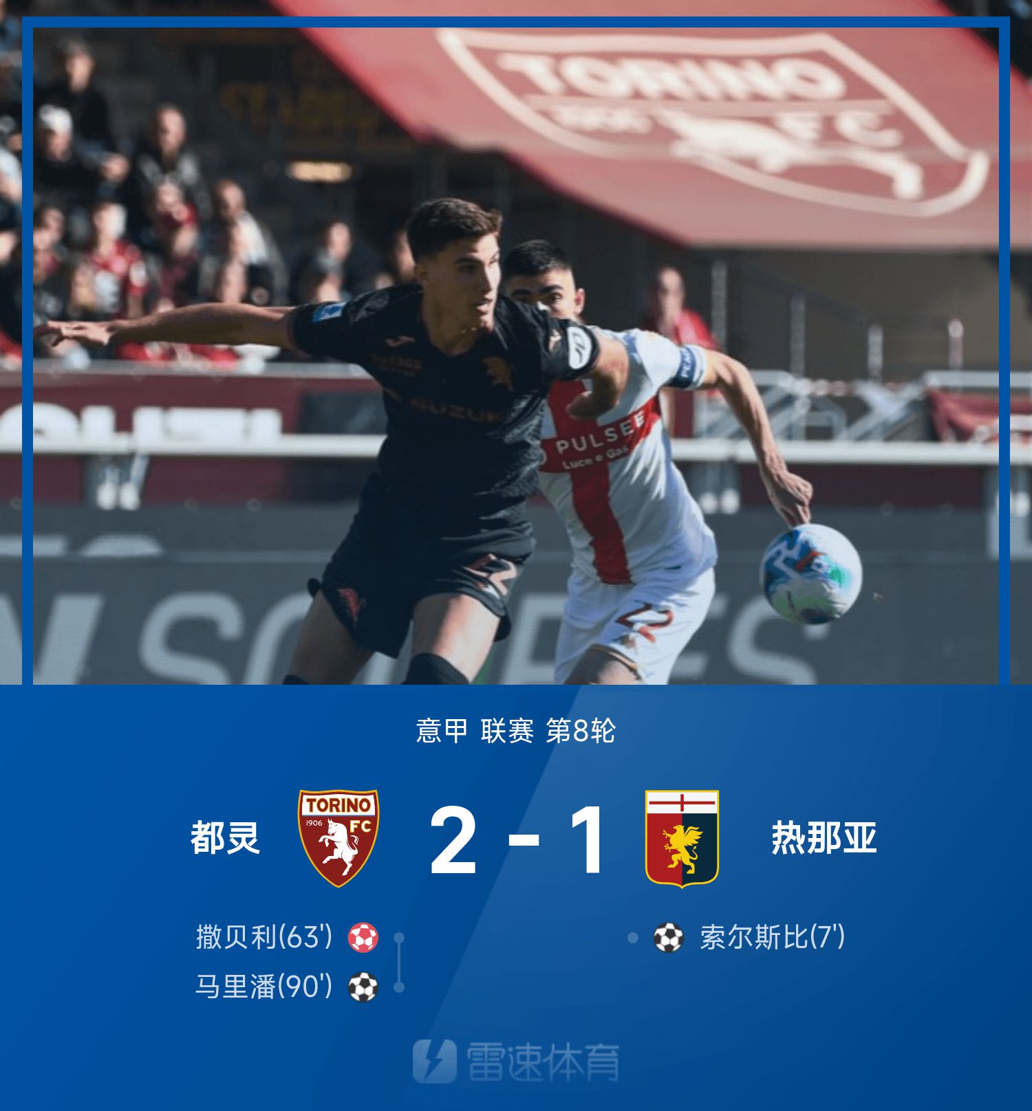 6686 Sports 26 октября В 8-м туре сезона 25/26 Серии А Турин обыграл Дженоа со счетом 2:1. В первом тайме Солсби удался блиц, но во втором тайме ситуация внезапно изменилась. Сабелли забил автогол и помог Турину сравнять счет. В последний момент центральный защитник Марипан реализовал последний удар.