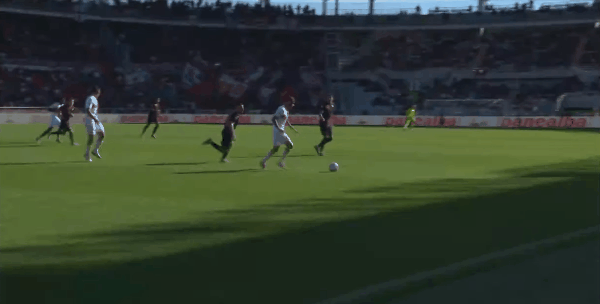 75' Симеоне прорвался справа и сильно ударил по воротам, Леиалли пролетел мимо и выбил мяч за лицевую линию.